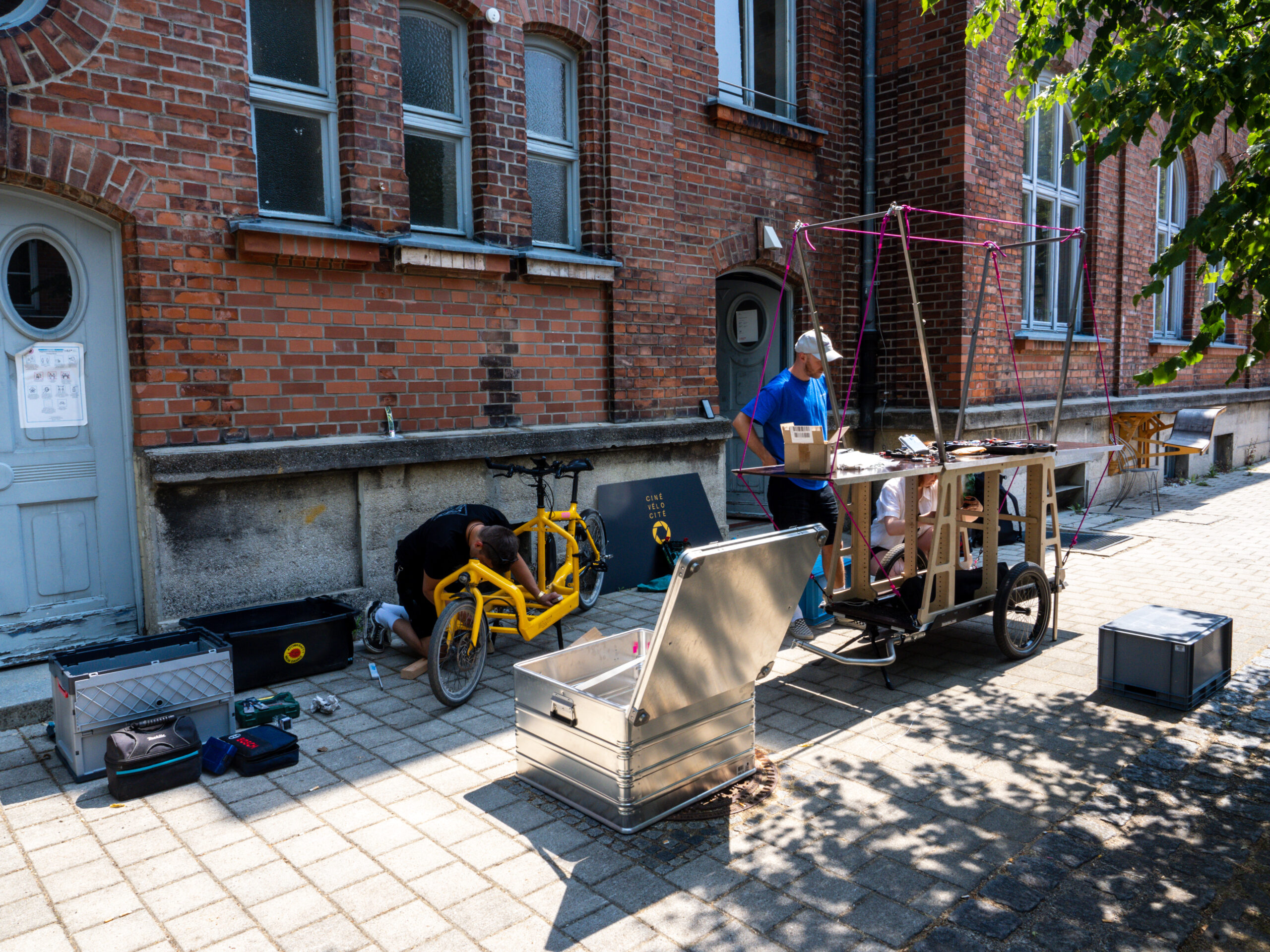 CINÉ VÉLO CITÉ versteht die Konstruktion nicht als abgeschlossenen Zustand, sondern als lernendes System. Anpassungen, Reparaturen und Erweiterungen sind integraler Bestandteil des Projekts. Das Fahrradkino ist damit zugleich Transportmittel, Kino, Werkstatt und Anschauungsobjekt für eine andere Form von kultureller Infrastruktur.